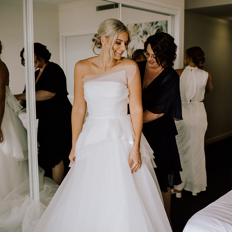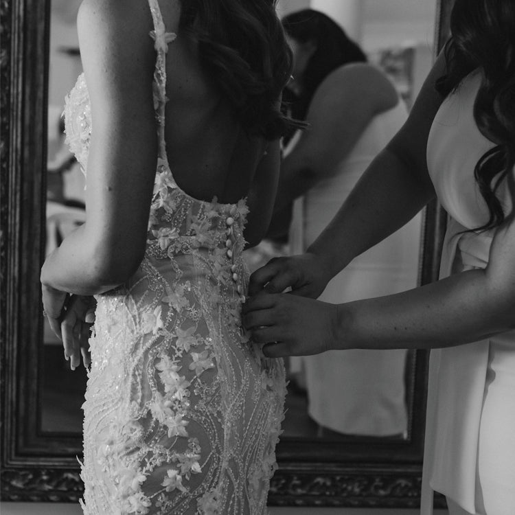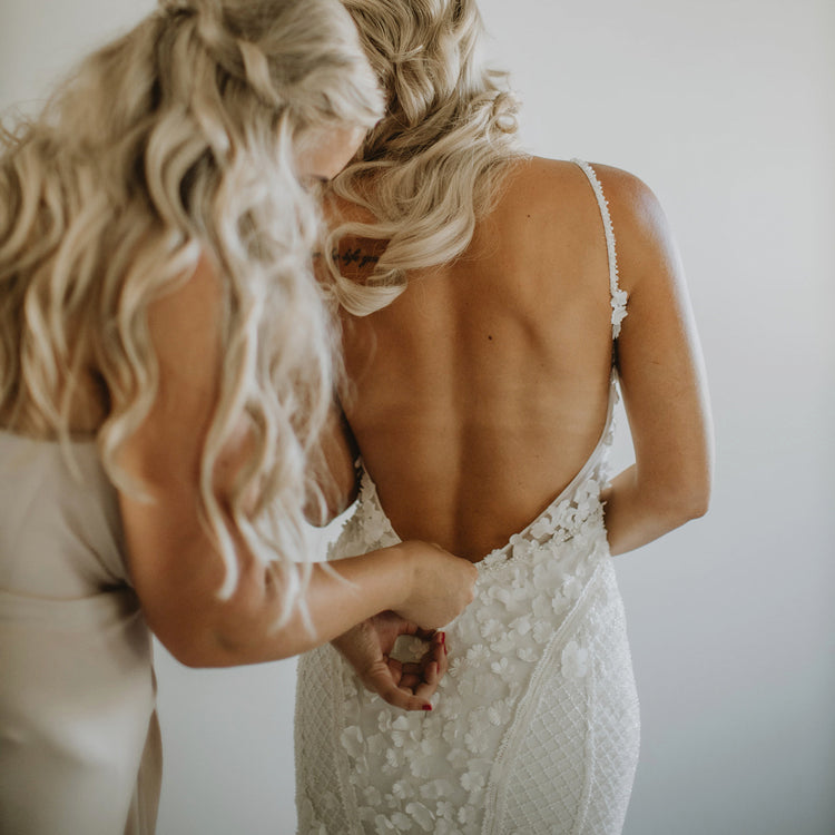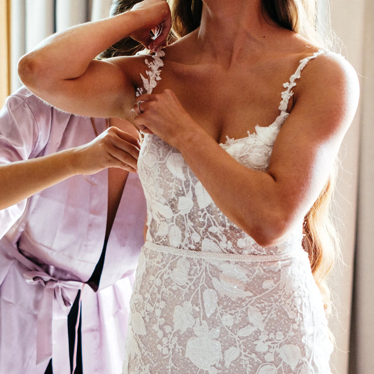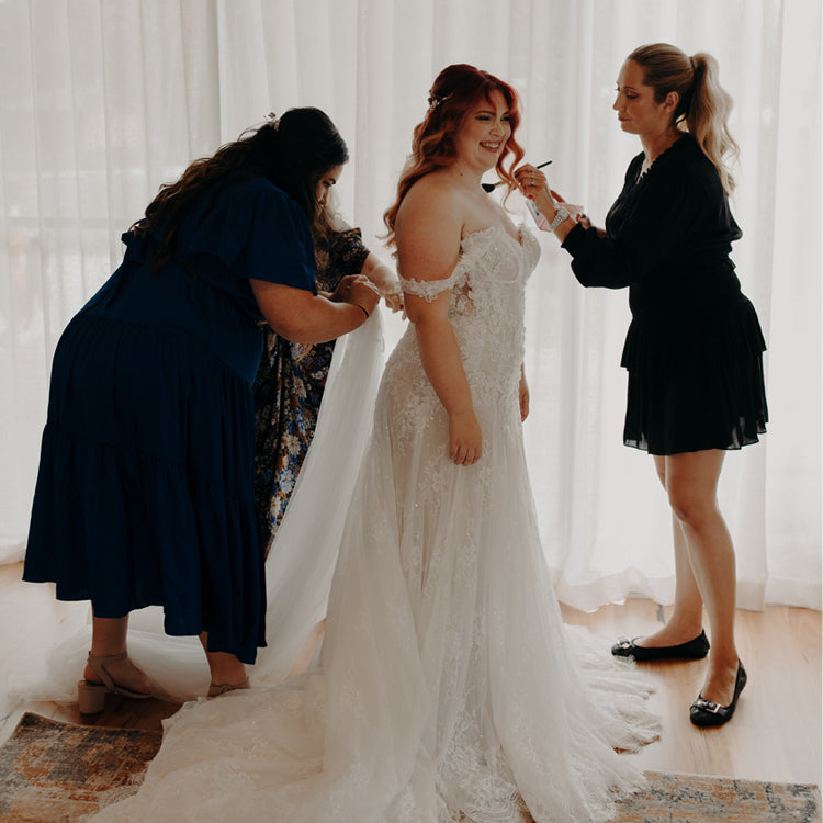 It's a special feeling for a bride to step into her wedding dress. Who will you get ready with on your wedding day?