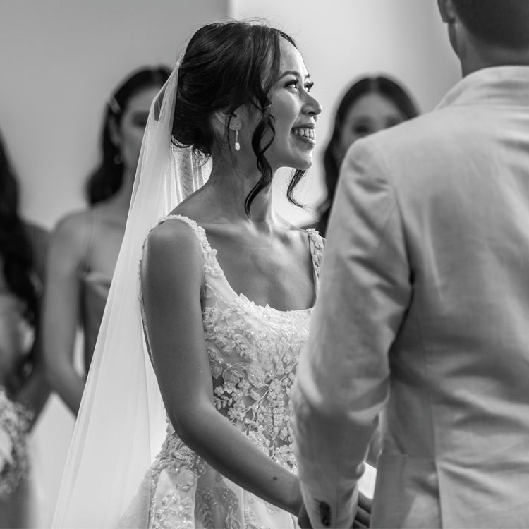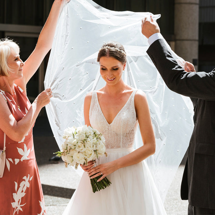 Often when the veil is placed, that's when the eyes start to water. The perfect touch to finish the look.