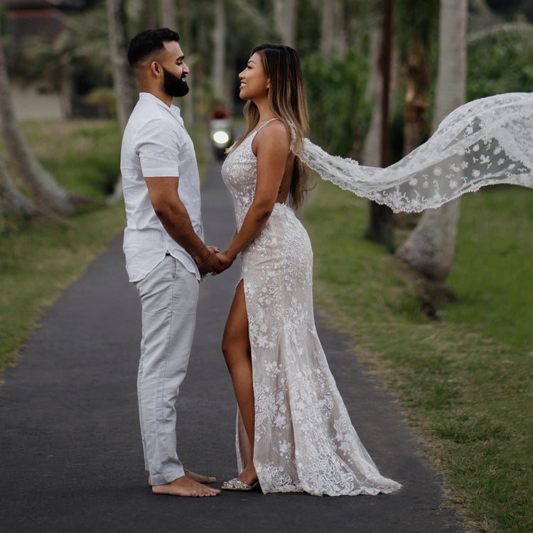 Sexy backless lace wedding dress, custom made for our beautiful bride Sukhi.
